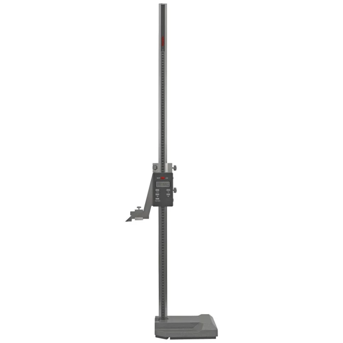 Finindstillelig digital-højdemåler med hårdmetal-ridsearm. Højdemåleren har omskifterfunktion fra millimeter til tommer og mulighed for ± justering af millimeter. Kan bruges sammen med vippeindikatorer. 0,01 mm aflæsning. Fås i flere varianter.