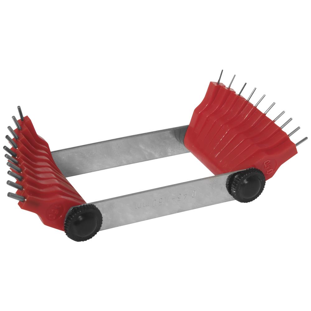 Dyselæresæt til bestemmelse af størrelsen på et hul eller en dyse. Måleområde 0,45-1,50 mm.