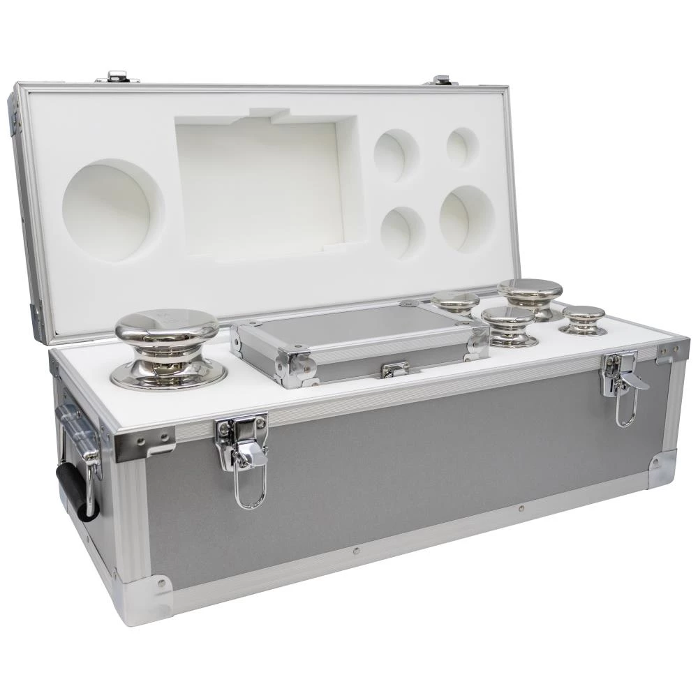 Kalibreringsloddesæt med 29 lodder (1 mg – 10 kg) i rustfrit stål til test af industrielle vægte. Anvendes til kalibrering af vægte med inddeling op til 6.000d. Kalibreringslodderne er designet og fremstillet i overensstemmelse med OIML R111:2004 og er spejlpoleret. Lodder 1 mg – 20 g: solidt lod. Lodder 50 g – 10 kg: justeringskammer i bunden. Vejeområde: 21.111,11 g. Tolerance: ± 0,200 mg – 500,00 mg. OIML Klasse: M1. Sættet indeholder følgende: Mg: 1/2/2/5/10/20/20/50/100/200/200/500 & g: 1/2/2/5/10/20/20/50/100/200/200/500/1.000/2.000/2.000/5.000/10.000. Leveres i aluminiumskasse med skum, inkl. pincet, renseklud og fabriks testcertifikat.