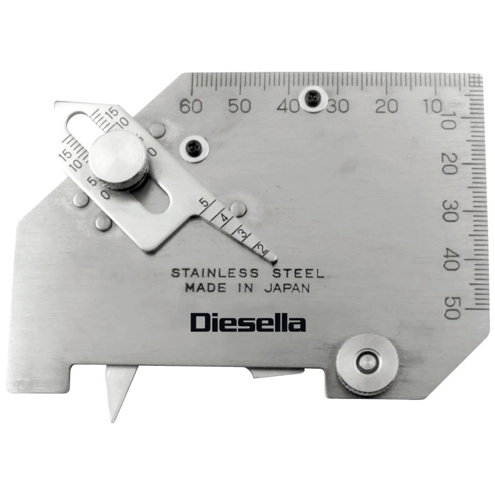 Rustfri, universal WldPro Rustfri svejselære til kontrol af svejsninger med let aflæsning. Denne kan også benyttes til kontrol af svejsninger med “kærv fejl” bort brænding eller mekanisk fjernet, svækket materiale. Bruges ved skibs- og brokonstruktioner. CAM-type model E. A-mål 0-15 mm. Skærpningsvinkel 0-60°. Undermål 0-25 mm.