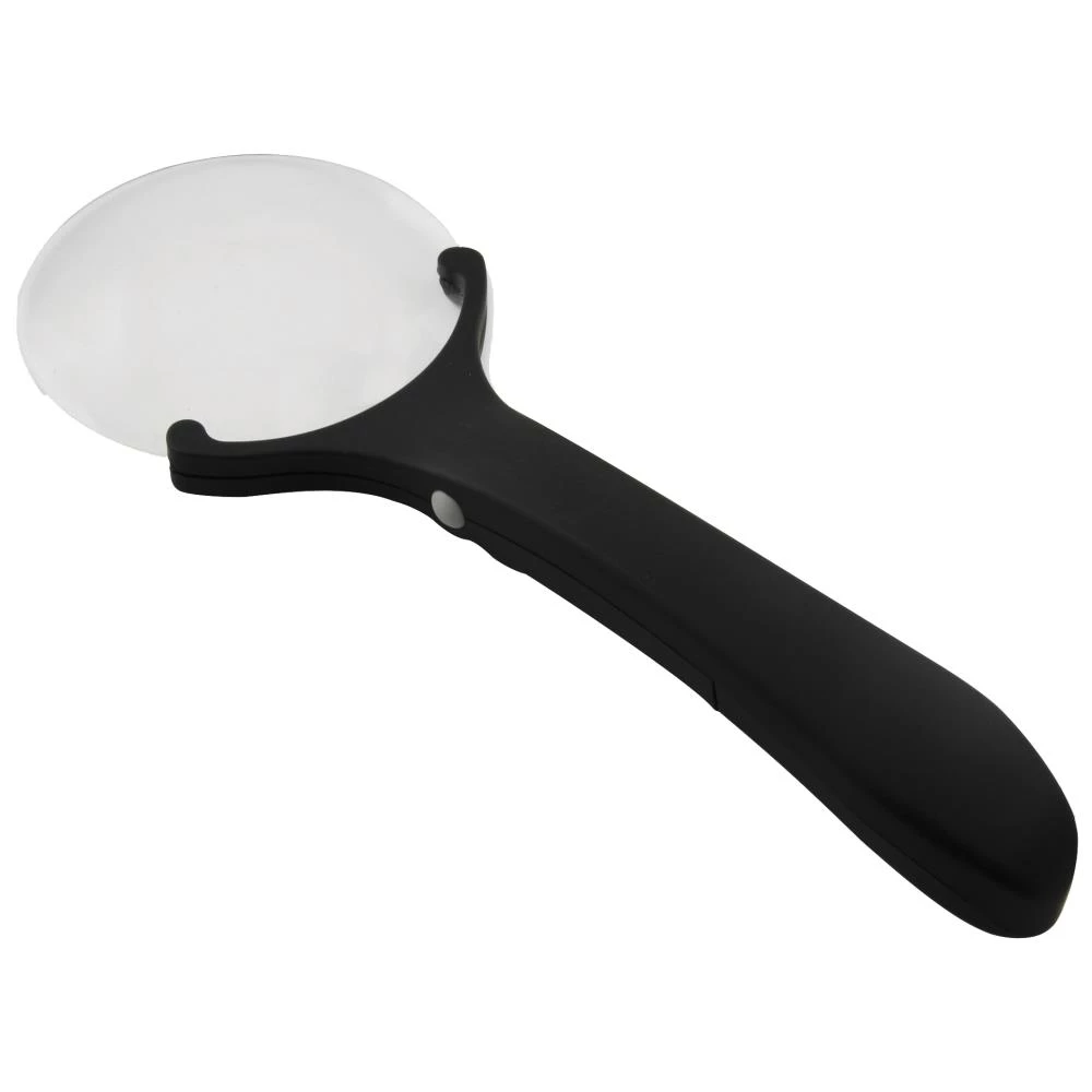 Håndholdt lup med ø88 mm glaslinse og 2× LED-lys. Et glimrende hjælpemiddel til mange forskellige gøremål. Forstørrelsesglasset har to forstørrelsesfelter, der forstørrer med henholdsvis 2,5× (ø88 mm) og 6× (ø21 mm). Anvender 2×AAA 1,5 V batterier (ej inkl.)