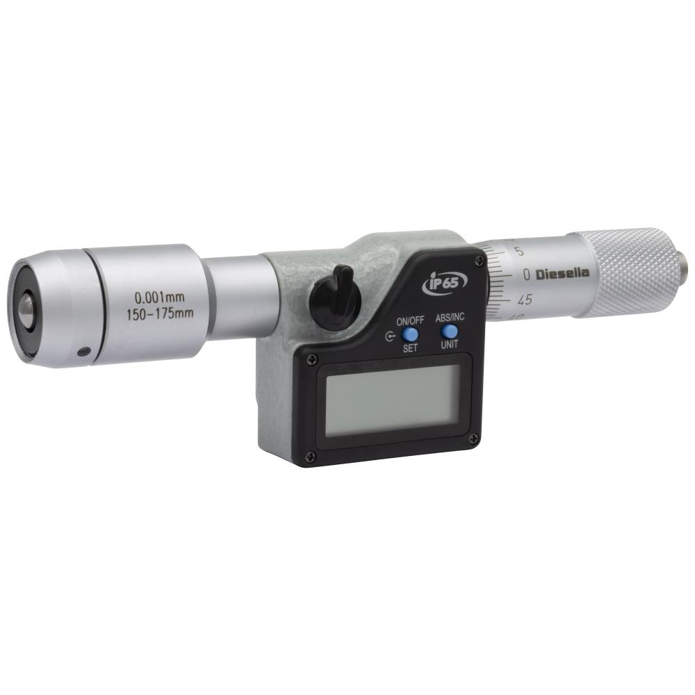 Digital mikrometer til indvendig måling med udskiftelige forlængere til store måleområder. Forlængere er udført i rørdesign med hårdmetalbelagte måleoverflader. Flere sæt kan sættes sammen for alternative længde. Leveres i trækasse. Batteri 1× LR44 medfølger.