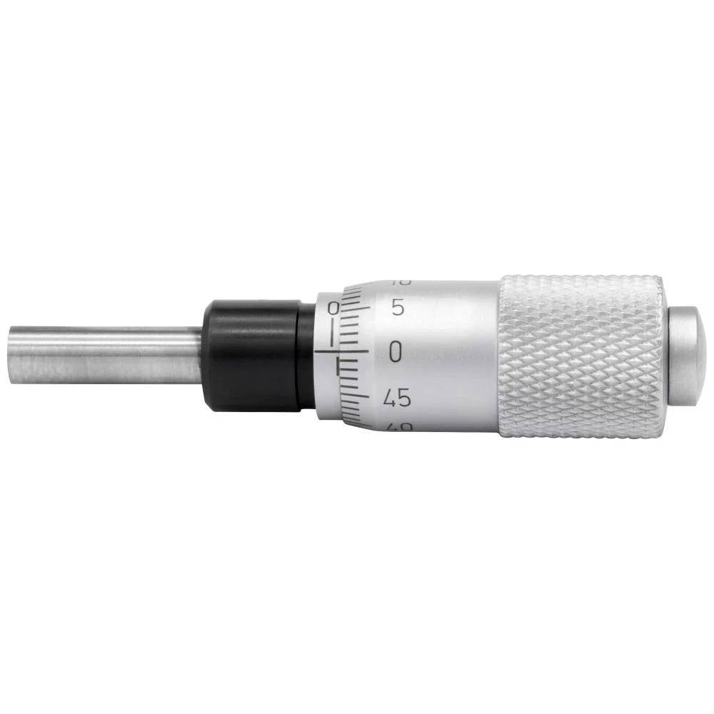 Indbygnings-mikrometer med måleområde fra 0-13 mm med hærdet spindel og planparallel måleflade. Anvendes bl.a. til indbygning i maskiner, apparater, elementer, måleelementer osv. som justerbart målebordsanslag. Aflæsning 0,01 mm. Leveres i plastbeholder.