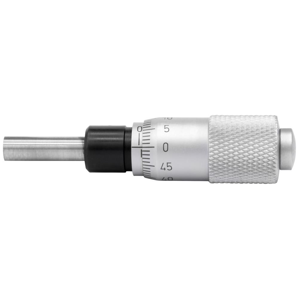 Indbygnings-mikrometer med måleområde fra 0-13 mm med hærdet spindel og planparallel måleflade. Anvendes bl.a. til indbygning i maskiner, apparater, elementer, måleelementer osv. som justerbart målebordsanslag. Aflæsning 0,01 mm. Leveres i plastbeholder.