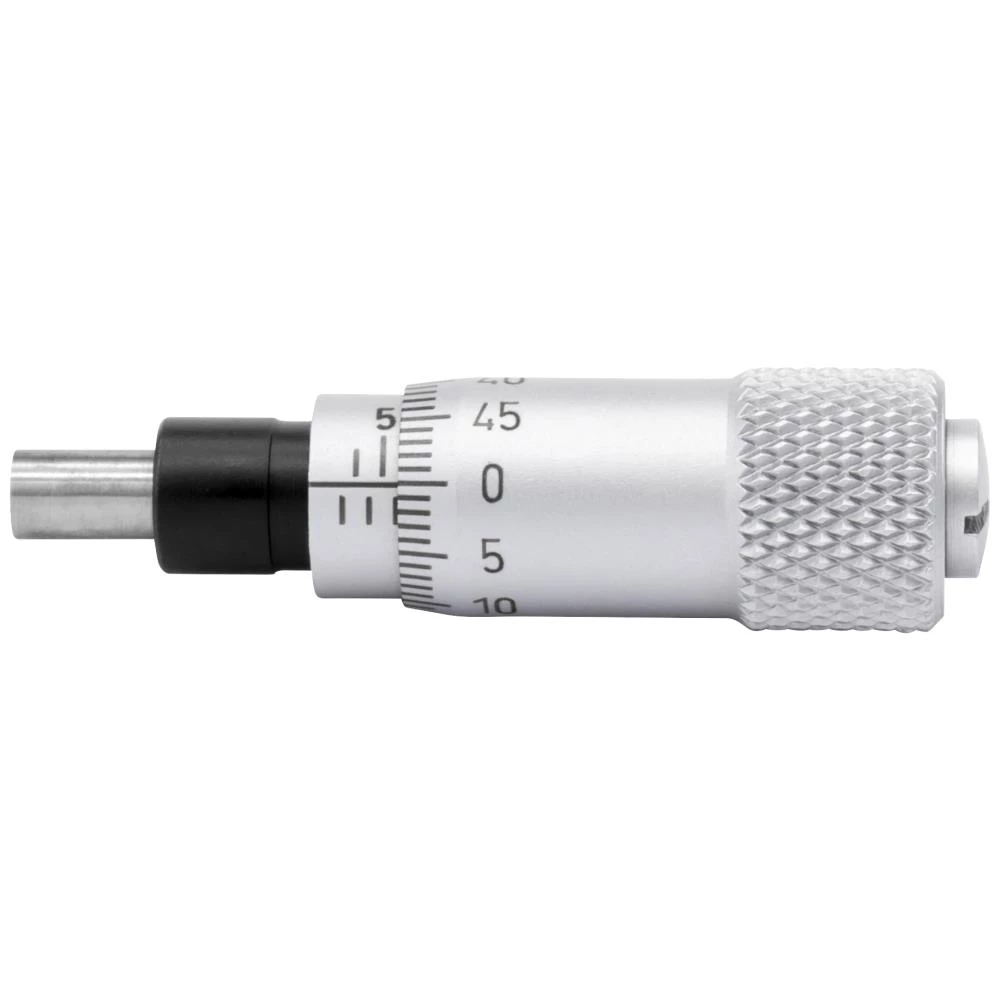 Indbygnings-mikrometer med måleområde fra 0-6,5 mm med hærdet spindel, planparallel måleflade og omvendt skala. Anvendes bl.a. til indbygning i maskiner, apparater, elementer, måleelementer osv. som justerbart målebordsanslag. Aflæsning 0,01 mm. Leveres i plastbeholder.