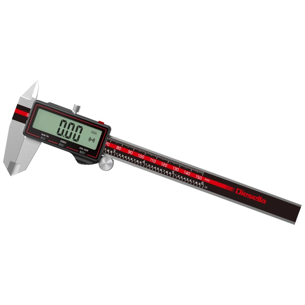 ISO 13385 digital-skydelære med fladt dybdemål. Udført som mono-block og i rustfrit stål med stort LCD-display og trådløs datafunktion. Aflæsning: 0,01 mm. Funktioner: Skift imellem mm/tommer, manuel on/off, nulstilling, Wireless data overførsel. Inkl. 1× CR2032-batteri.