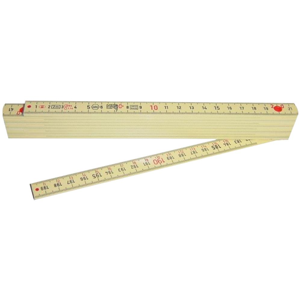 Metrisk Buchs glasfibertommestok med led der låser i 90 grader vinkel. Gennemgående nitter og hærdede stålfjedre. Glat over leddene, så man kan strege efter den. Kraftige stave og fremragende slidstyrke, modstandsdygtig overfor vand. Velegnet til murerarbejde. Fås i flere farver.