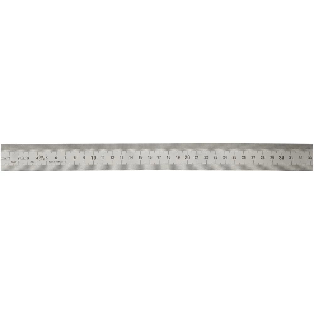 Matforkromet stållineal med 1 mm graduering i top og 0,5 mm graduering i bund. På bagsiden har linealen gevindtabel og omsætningstabel fra tommer til millimeter. Læseretningen er venstre mod højre. DIN2004/22/ECII tolerance. Fås i flere varianter.