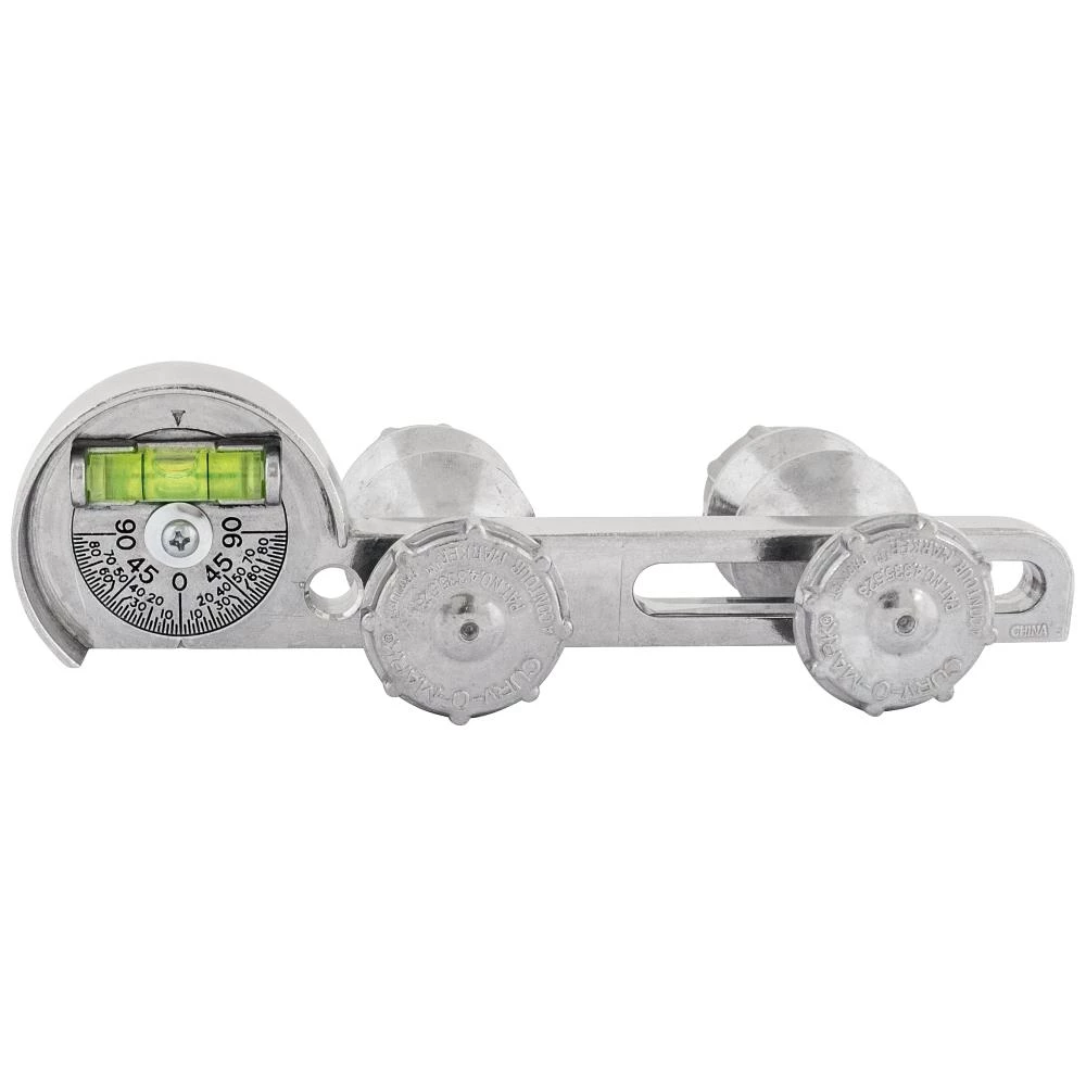 Curv-o-mark vaterpas med drejelig libelle 0-90-0° til kontrol af hældning eller smig. Designet med én stationær møtrik og én bevægelig møtrik som kan glide op til 139 mm (2,5 tommer). Fremstillet af støbt aluminium – ikke-magnetisk og kan bruges på PVC-rør. Ved montering af de medfølgende bolte, kan bolte flanger kontrolleres for korrekt placering. Benyttes til boltehuller fra 6 mm til 42 mm med center afstand fra 40 til 145 mm. Flangevaterpas kan bruges til flanger med boltehuller fra 16 mm og op til 32 mm. Kan bruges som et niveauhjælpeprogram eller med vedhæftede filer til to-hullers flangejustering. Designet med to justerbare pinde med selvspændende fjeder, bevirker at der ikke mistes nogle løse dele.