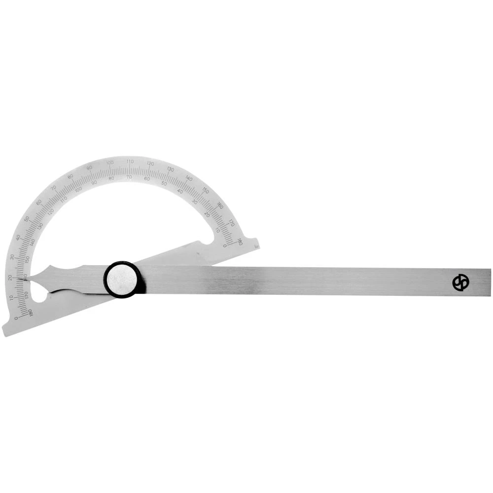 Vinkelmåler/gradmåler med matforkromet, laserprintet dobbeltskala. 0-180° måleområde. Fås i flere varianter.