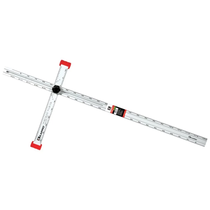 Alsidig gipsvinkel med både millimeter- og gradindelling. Med stærk skruehåndtag, meget synlig tovejs trykt skala (højre og venstre) og ridset markeringsgrader på T-hovedet, så man nemt kan indstille den ønskede hældning. Kan justeres til enhver vinkel, og foldes for nem opbevaring. Er udstyret med endehætter med afsats, så vinklen holder sig selv og ikke vipper.