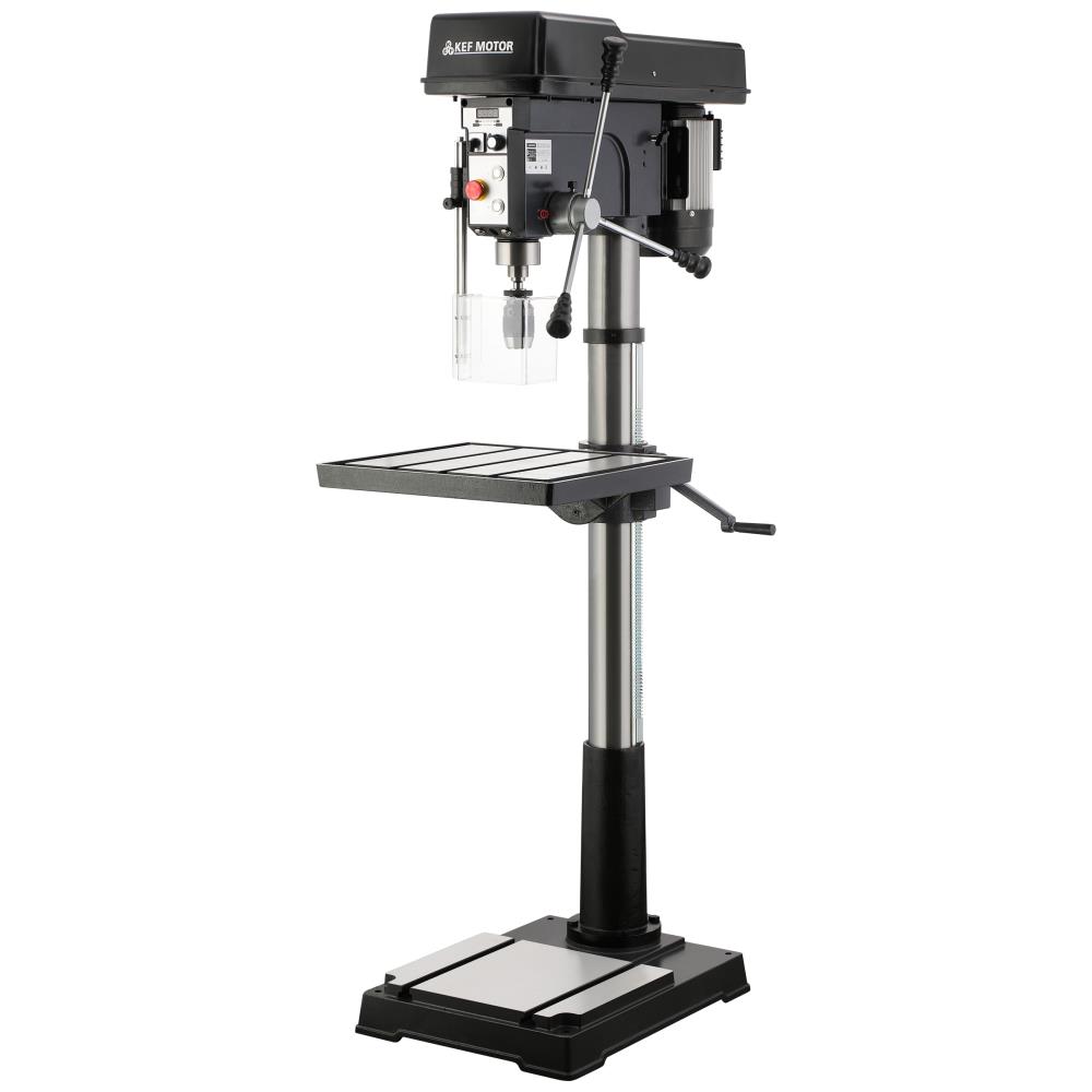 3×400 V remtrukken søjleboremaskine til værksteder og lettere industri. Variabel hastighed 30-3.000 omdr./min. Morsekonus nr. 3. Komplet med selvspændende 16 mm borepatron. Separat nødstop. LED-arbejdslys. Udstyret med laserlys for hurtig og præcis markering af boreposition på materialer. For maksimal sikkerhed ved skift af remhastighed er maskinen udstyret med sikkerhedsafbryder. Beskyttelsesskjold med mikrokontakt. 45° vipbart bord (475×425) med gradskala. Maks. vægt på bordet 10 kg. Reversibel spindelretning og 2 spindelhastigheder. Borekapacitet ø32 mm. Motor 1.500 W. Udladning 255 mm. Svingkapacitet 510 mm. Maks. afstand spindel/bord 680/1.170 mm. Maks. spindelvandring 120 mm.