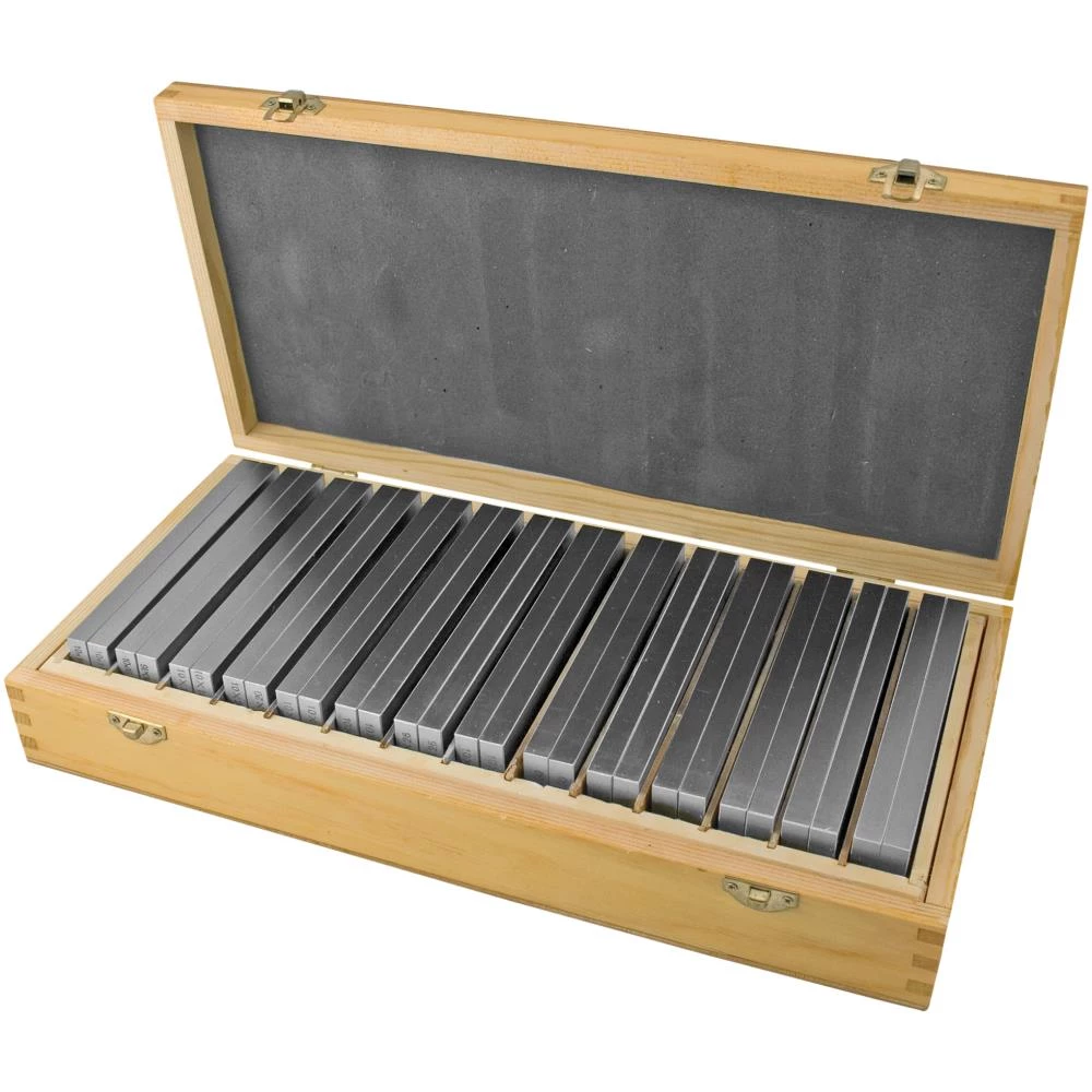 14 par parallelklodser i sæt. Anvendes til parallel støtte af emner i maskinskruestik eller anordninger. Indsatshærdet og slebet udførsel. ISO 2768 M. Fås i flere varianter.