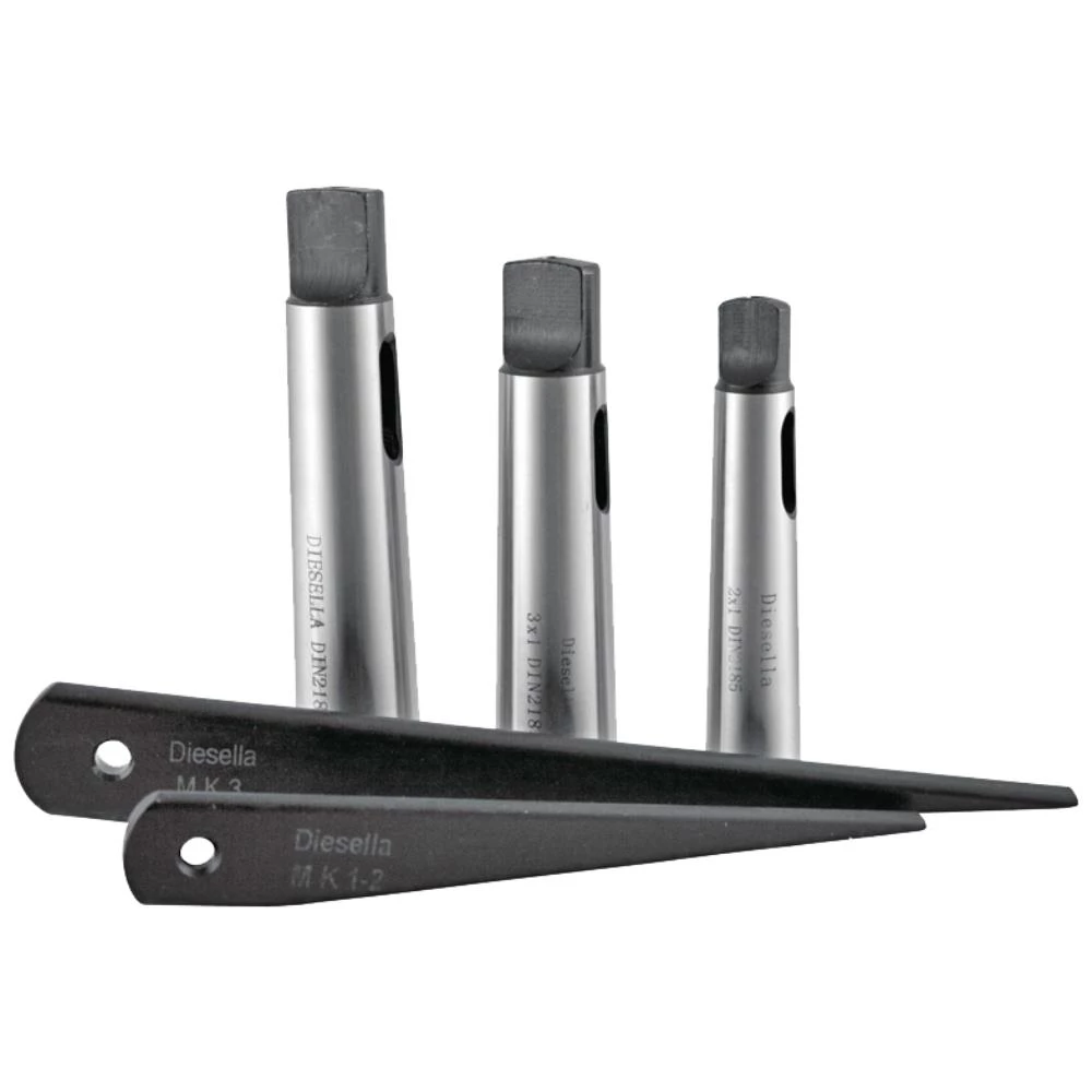 Reducerbøsningssæt MK3-2-1 inkl. uddriverkiler. Indhold: 1 stk. MK2/1, 1 stk. MK3/1, 1 stk. MK3/2, 1 stk. uddriverkile med udvendig konus 1+2 og 1 stk. uddriverkile med udvendig konus 3.