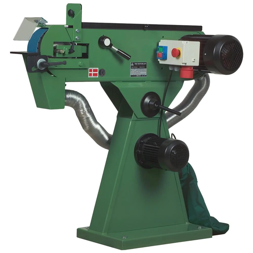 Båndslibemaskine, 3×400 V. 4,8 HK med indbygget dobbeltudsugning.