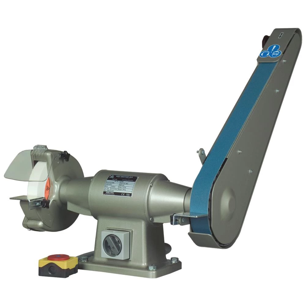Bænkmodel, 3×400 V. 2800 omdrejninger, med båndarm 50×1600 H og slibeskive NK 36 V.