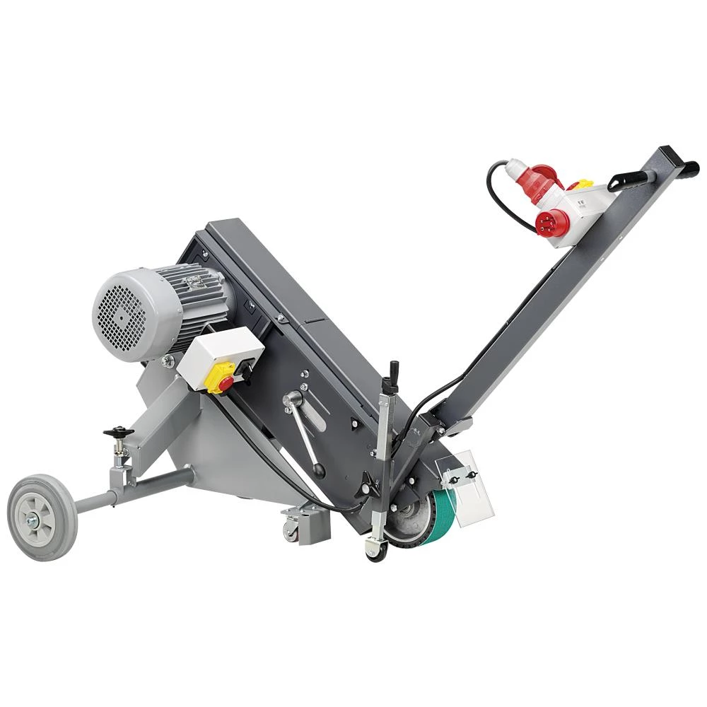Mobil køreenhed til effektivt slibearbejde på gulv “på arbejdspladsen”. Giver en bekvem, opret arbejdsposition og yder effektiv slibning og pudsning af svejsesøm på gulv samt overslibning og dekapering af ståldele. Stangpositionen kan indstilles trinløst. Lille vægafstandsmål. Dybdeanslag. Optagende effekt 4 kW. Spænding: 3 × 400/440 V, 50/60Hz. 3.000 omdr./min. Båndmål 75 × 2.000 mm.