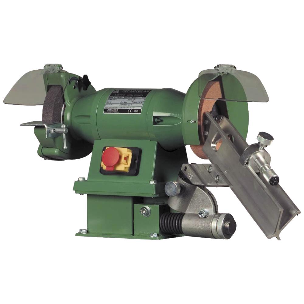 Slibette spiralborslibemaskine 6NE til slibning af spidsvinkel 116-118° og friskærsvinkel 6-8°. Bænkmodel. 1×230 V – 50 Hz. 480 W motor med 3.000 omdr./min. Kopsten 150×38×13 mm. Slibeskive ø150×25×13 mm. Borslibearm A 6-30 mm med afretterdiamant.