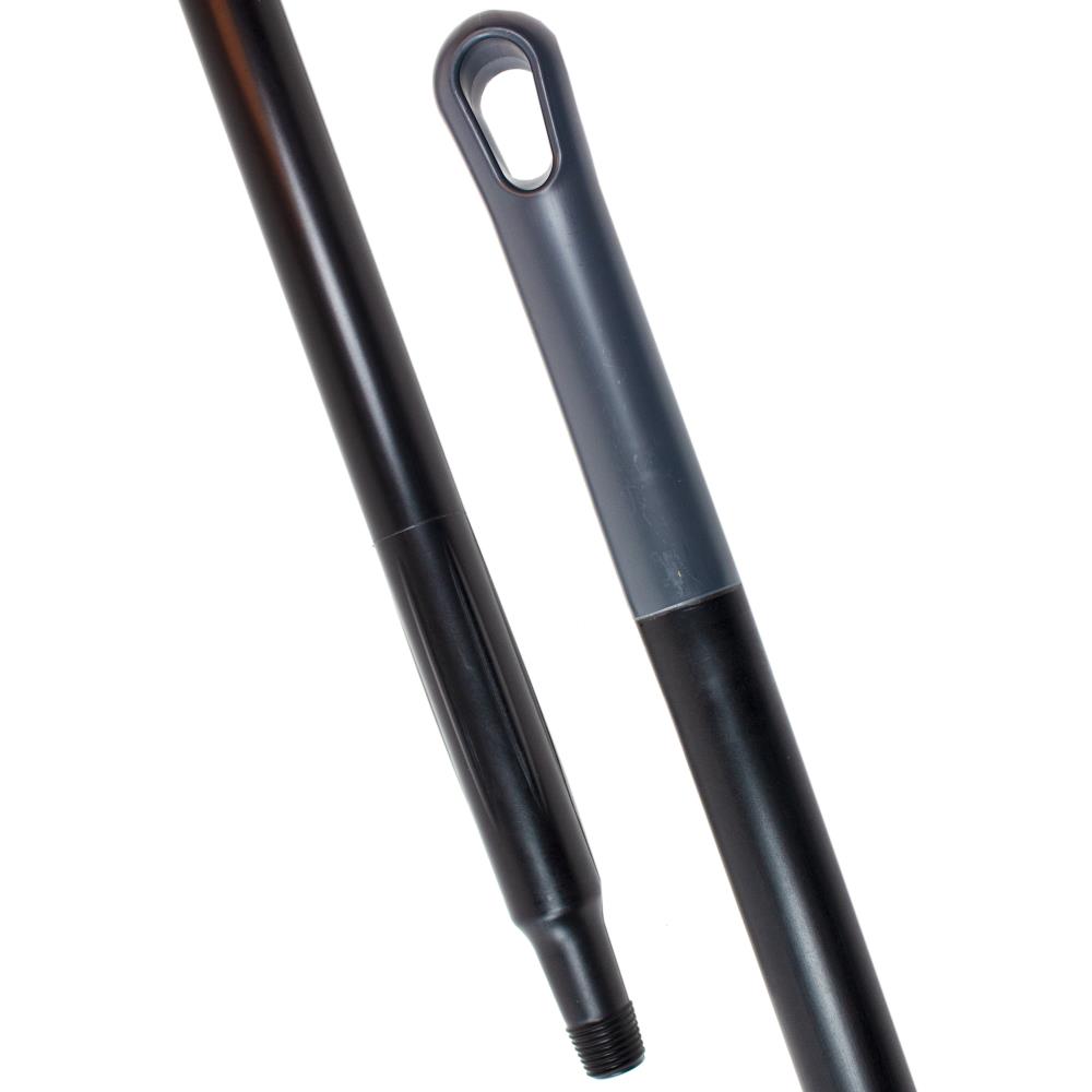 Letvægtsskaft i sort plast med udvendigt tysk gevind ø25 mm og ophængningsmulighed. Passer til 630210 + 15 samt til eks. skolekoste, værkstedskoste og gadekoste med indvendigt tysk gevind.