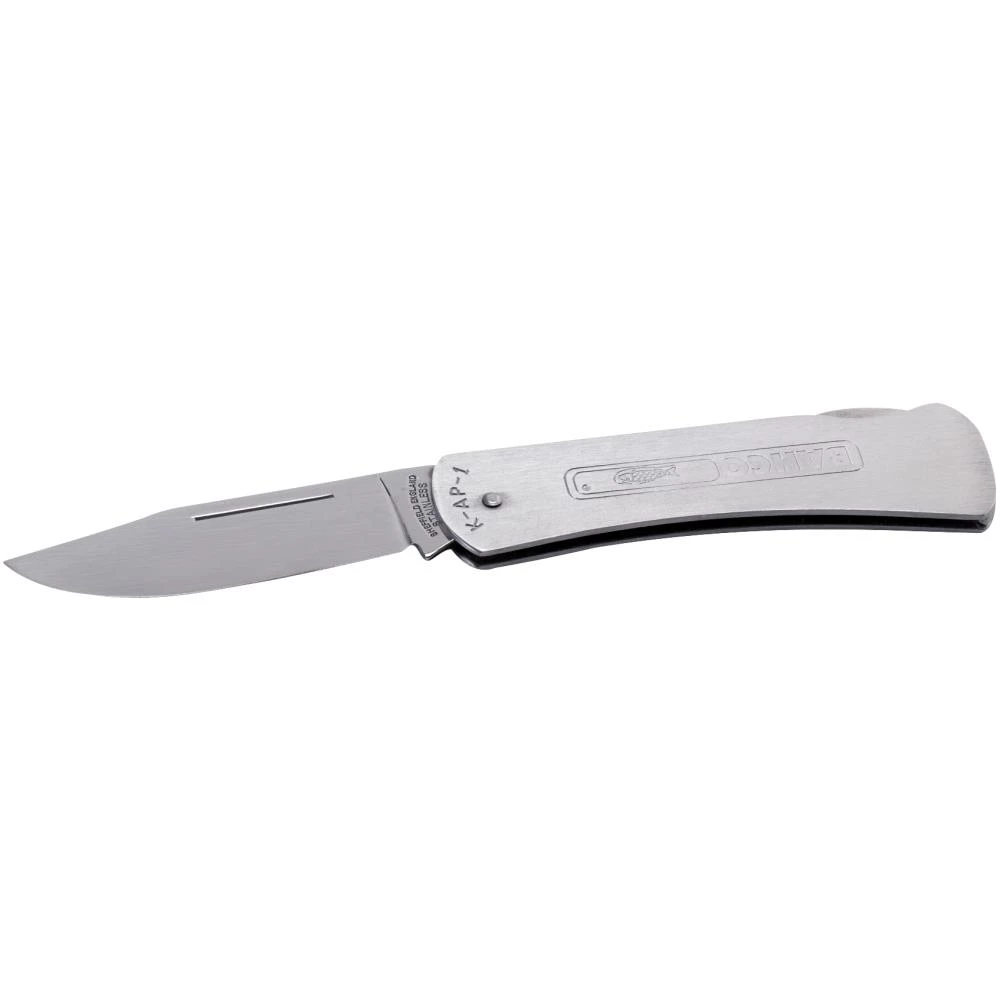 Beskærekniv udført i rustfast stål med fjederbelastet foldeblad og sikkerhedslås. Beregnet til renskæring af snitflader, men også velegnet som kabel- eller lommekniv.