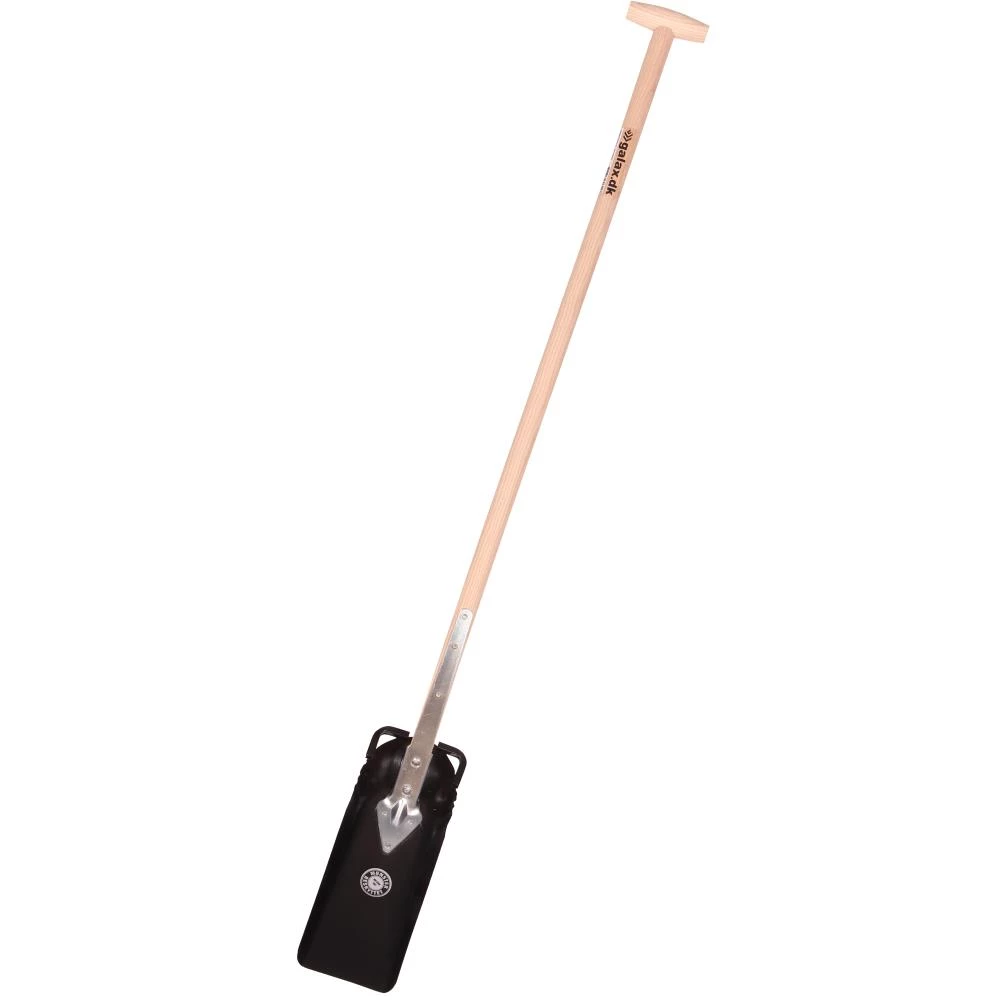 Drænskovl med smalt, hærdet og pulverlakeret skovlblad med tråd på begge sider. Asketræsskaft og krykke. Ideel til nedgravning af rør samt andre udgravningsopgaver. Skovlen fås i to størrelser, hhv. 12 cm og 14 cm.