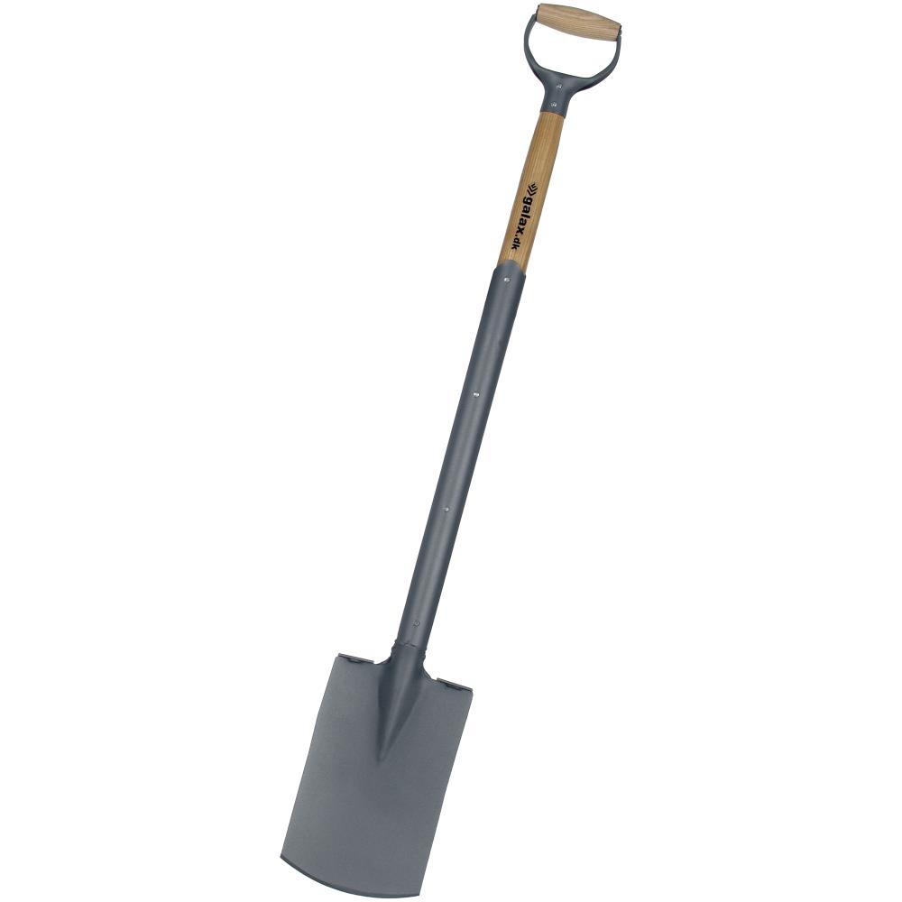 Entreprenørspade med lang skinne, som giver spaden ekstra styrke. Kraftig allround spade til brug på byggepladser, i gartnerier og andre steder hvor en spade kan blive udsat for hårdt brug. Lakeret asketræsskaft med kraftigt D-greb i jern. Spadeblad 290×190 mm.