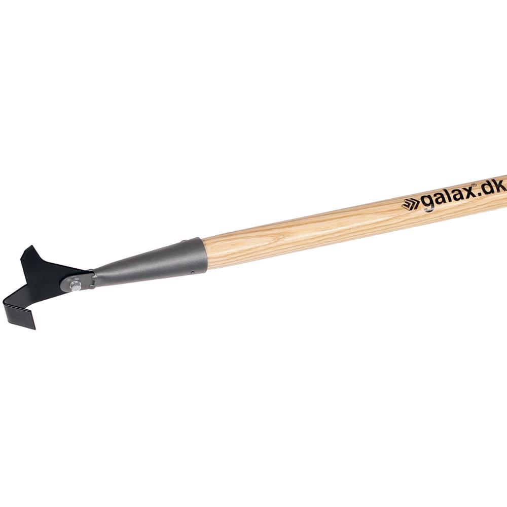 Flise/fugerenser med speciel V-form, som letter rensningen af fuger med varierende afstand mellem fliserne. Klingen kan let udskiftes ved at løsne en enkelt skrue. Afrundet, lakeret asketræsskaft.