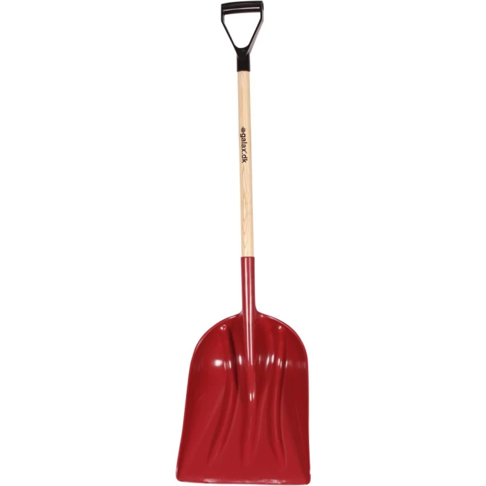 Allround skovl med rummeligt og stabilt skovlblad (470×370 mm) i kunststof. Lakeret asketræsskaft med D-greb i plast. Frostsikret til ÷30°C.