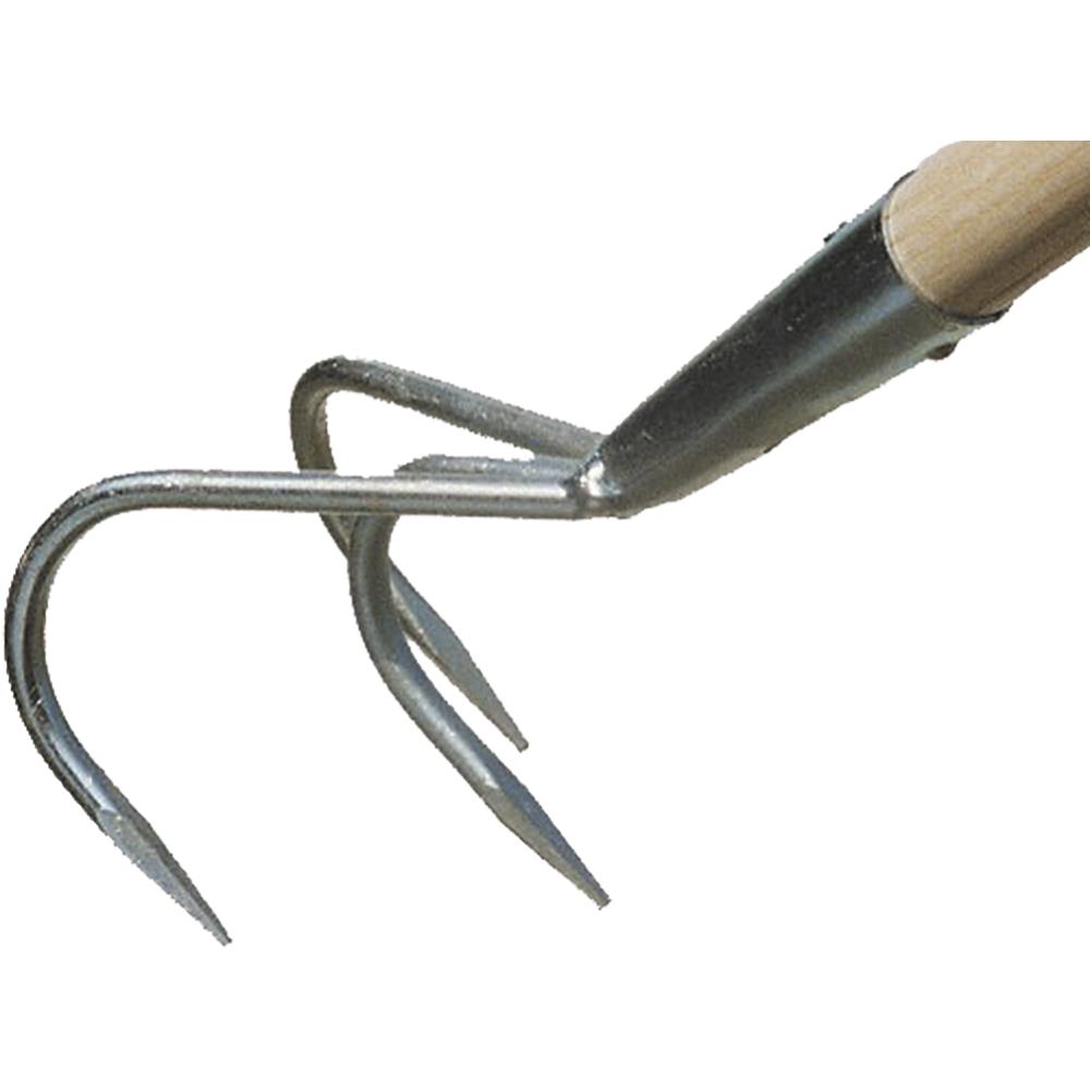 3-grenet kultivator/havekratte med afrundet, lakeret asketræsskaft.