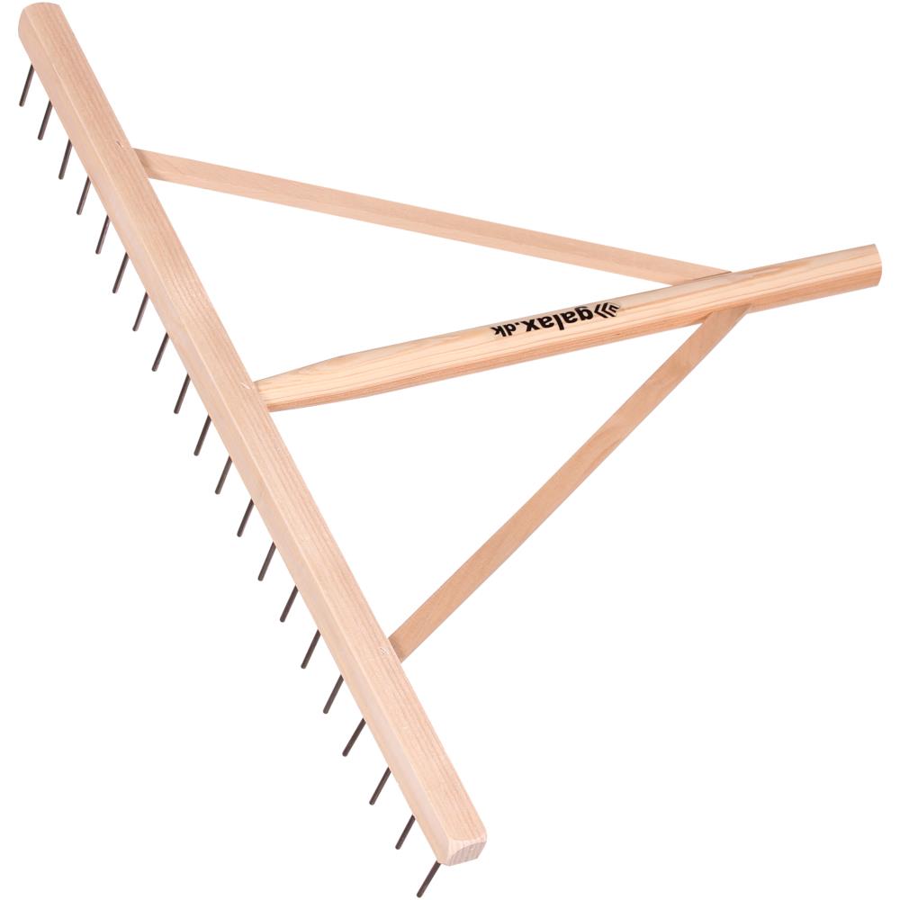 Trærive med 20 ståltænder med god afstand. Riven er velegnet til samling af fx grene og kviste på plæner eller i grus – også velegnet i forbindelse med anlægsarbejde. Rive og skaft er lavet af fyrretræ.