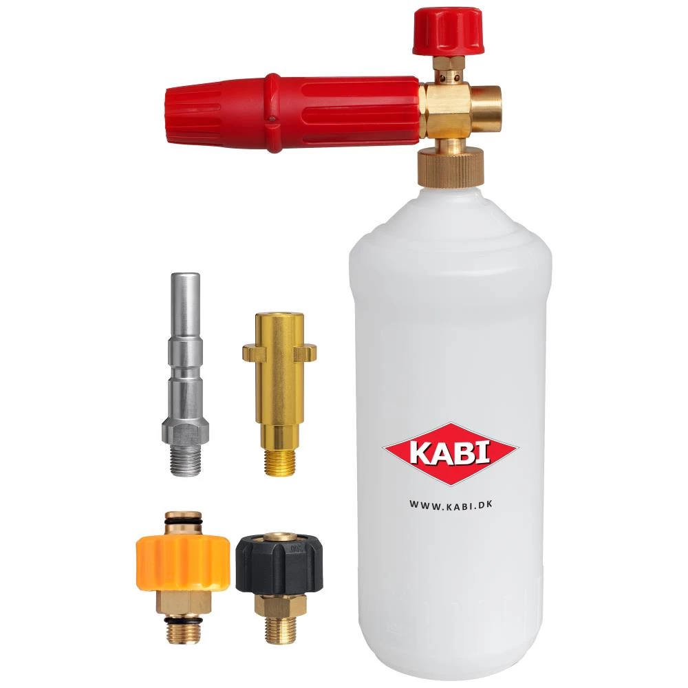 Skumlanse til brug sammen med højtryksrenser. Solidt skumhoved af messing. Drejeventil til at justere forholdet mellem vand og rengøringsmiddel. Skumsprøjtebredden kan justeres på dysen. Transparent beholder. Inkl. adaptere til Nilfisk/Alto, Kärcher K/AVA og Kärcher HD (gammel og ny). Dyse ø1,25 mm. Flaske 1 ltr. Maks. arbejdstryk 275 bar (2.600 psi).