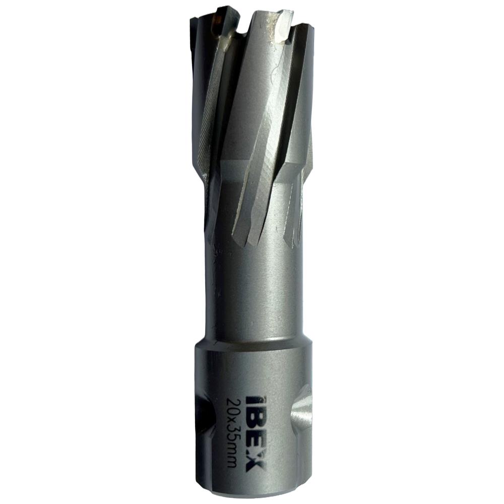 Kernebor med skæredybde 35 mm. Hårdmetal med 19 mm combi-skaft (Weldon og Nitto). Benyt Ibex centrerstift. Fås i flere dimensioner.