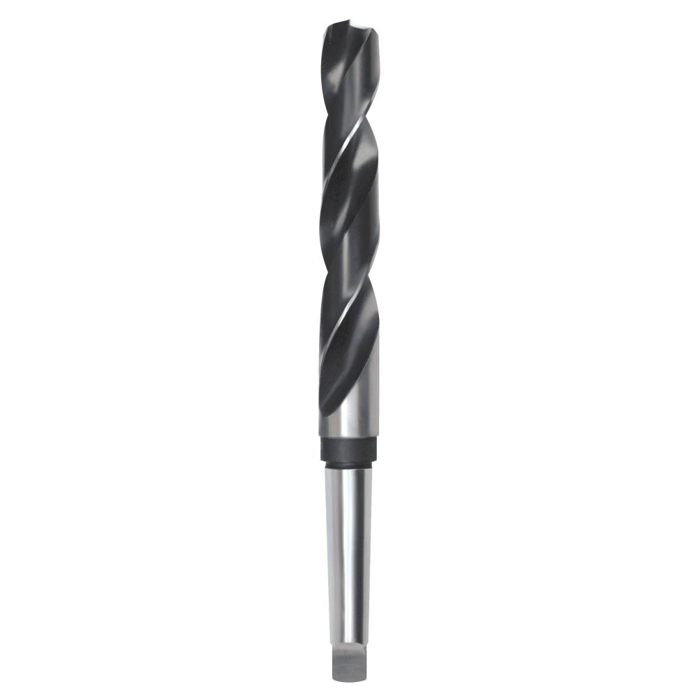 Spiralbor DIN345 HSS med morsekonus-skaft MK, HSS type N. Til boring i stål og stålgods, ulegeret eller legeret op til 900 N/mm², støbejern, tembergods, nysølv, grafit, kortspånede aluminiums-legeringer, messing og bronze. Fås i dimensionerne 10-60 mm.