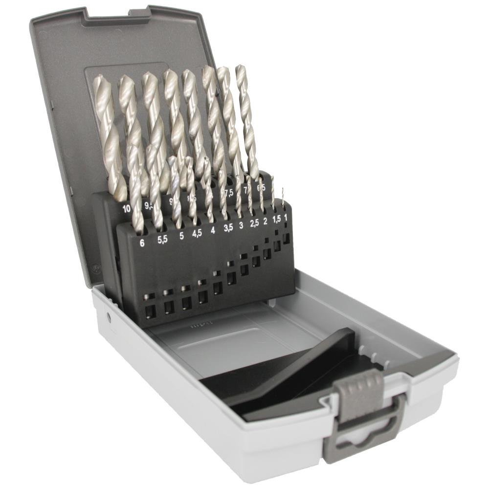 Alias spiralborsæt HSS-G. Slebne DIN338 med krydsslibning. Leveres i kvalitetskassette af kunststof. 1,0 / 10,0×0,5 mm, 19 dele.