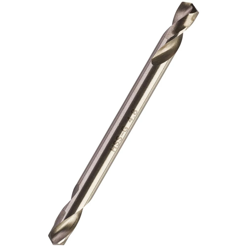 Dobbelte HSS slebne stubbor. Fremstillet af robust HSS-stål. Spidsgeometri: Delt skær DIN 1412 C. Spidsvinkel: 135°. Tolerance: h8. Spiralvinkel: Type N spiral, normal 20-30° vinkel. Højreskærende. Poleret overflade. Delt skær for bedst mulig centrering. Begge ender af boret kan bruges. På grund af sin korte længde kan der bores med et hårdt tryk på boret uden risiko for brud. Præcis koncentrering. Poleret højreskærende type N spiral gør, at metalspånerne fjernes hurtigere og der bruges mindre kraft ved boring. Bedst til boring i stål, ikke-jernholdige metaller og plast. Mest velegnet til tynde pladematerialer, som f.eks. til nittehuller. Fås i flere størrelser.