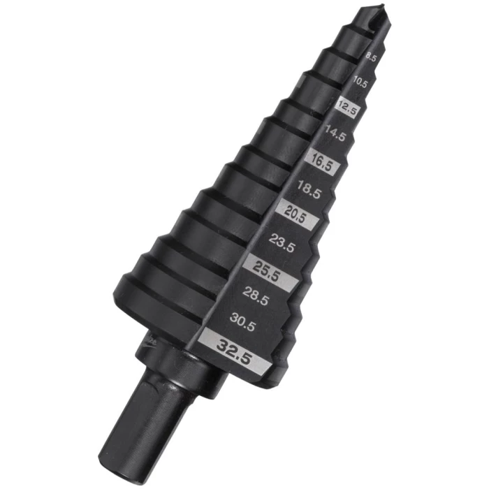 Fordele ved trinbor i forhold til traditionelle bor: Et bor kan bruges til mange størrelser huller. Bedste løsning til at forstørre eksisterende huller. Mere holdbare end traditionelle bor, den tykkere kerne er mere modstandsdygtig. Mere præcis og mindre vandring, spidsen starter ved kontakt. Huller uden kant, kræver mindre afgratning. Borer i plast uden spaltning eller revner. Trinbor er ideelle til følgende materialer: Jern og ikke-jernholdige metalplader, profiler og rør. Kobber, messing og aluminium. Rustfrit stål. Plast. Maksimal materialetykkelse 4 mm. For at sikre bedst levetid anbefales brug af kølevæske.