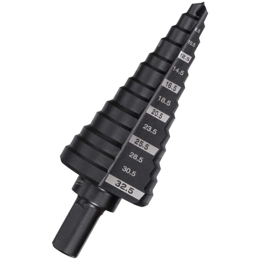 Fordele ved trinbor i forhold til traditionelle bor: Et bor kan bruges til mange størrelser huller. Bedste løsning til at forstørre eksisterende huller. Mere holdbare end traditionelle bor, den tykkere kerne er mere modstandsdygtig. Mere præcis og mindre vandring, spidsen starter ved kontakt. Huller uden kant, kræver mindre afgratning. Borer i plast uden spaltning eller revner. Trinbor er ideelle til følgende materialer: Jern og ikke-jernholdige metalplader, profiler og rør. Kobber, messing og aluminium. Rustfrit stål. Plast. Maksimal materialetykkelse 4 mm. For at sikre bedst levetid anbefales brug af kølevæske.