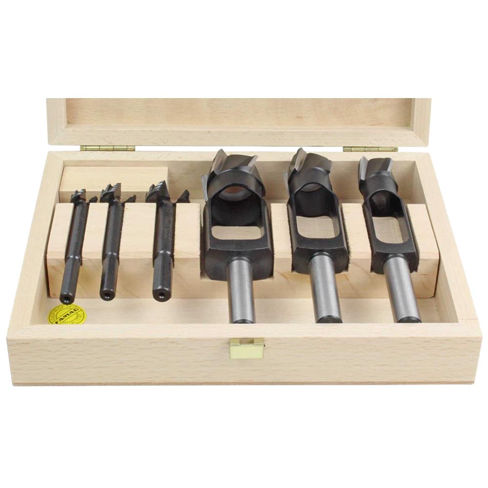 Famag propborsæt med Bormax forstnerbor. Til fremstilling af propper for udfyldning af knudehuller eller fiksering af delvise træskader i kombination med Bormax. Sættet indeholder: propbor serie 1616 (15 mm, 20 mm og 25 mm) og forstnerbor Bormax serie 1622 (15 mm, 20 mm og 25 mm). Leveres i trækasse.