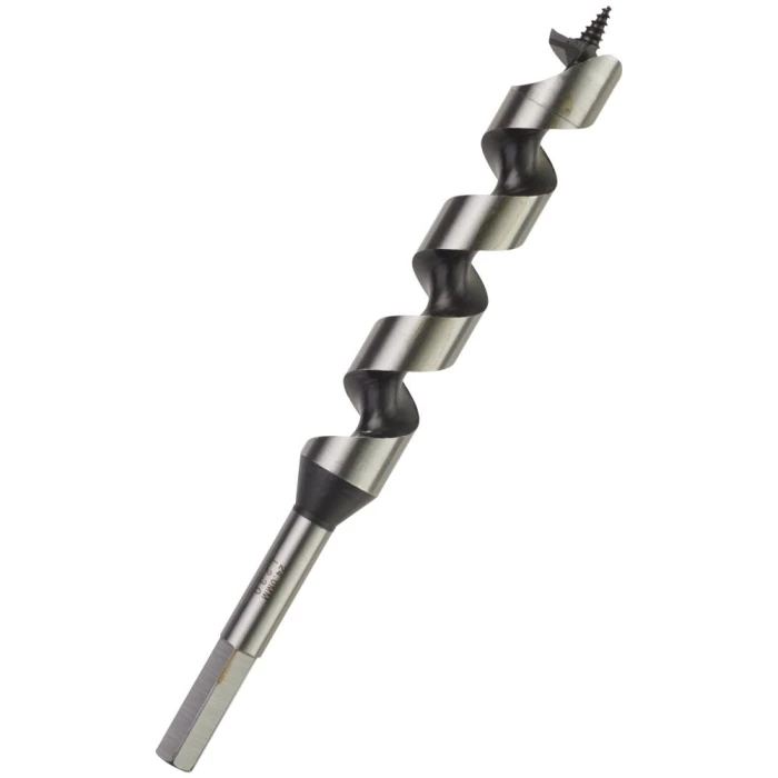 Træsneglebor til tunge præcisionsboringer i blødt og hårdt træ, store planker, bjælker, gulvbrædder, spånplader og krydsfiner. Lewis-sporkonstruktion for hurtig fjernelse af spåner og 6kt-skaft for sikkert greb i borepatronen.