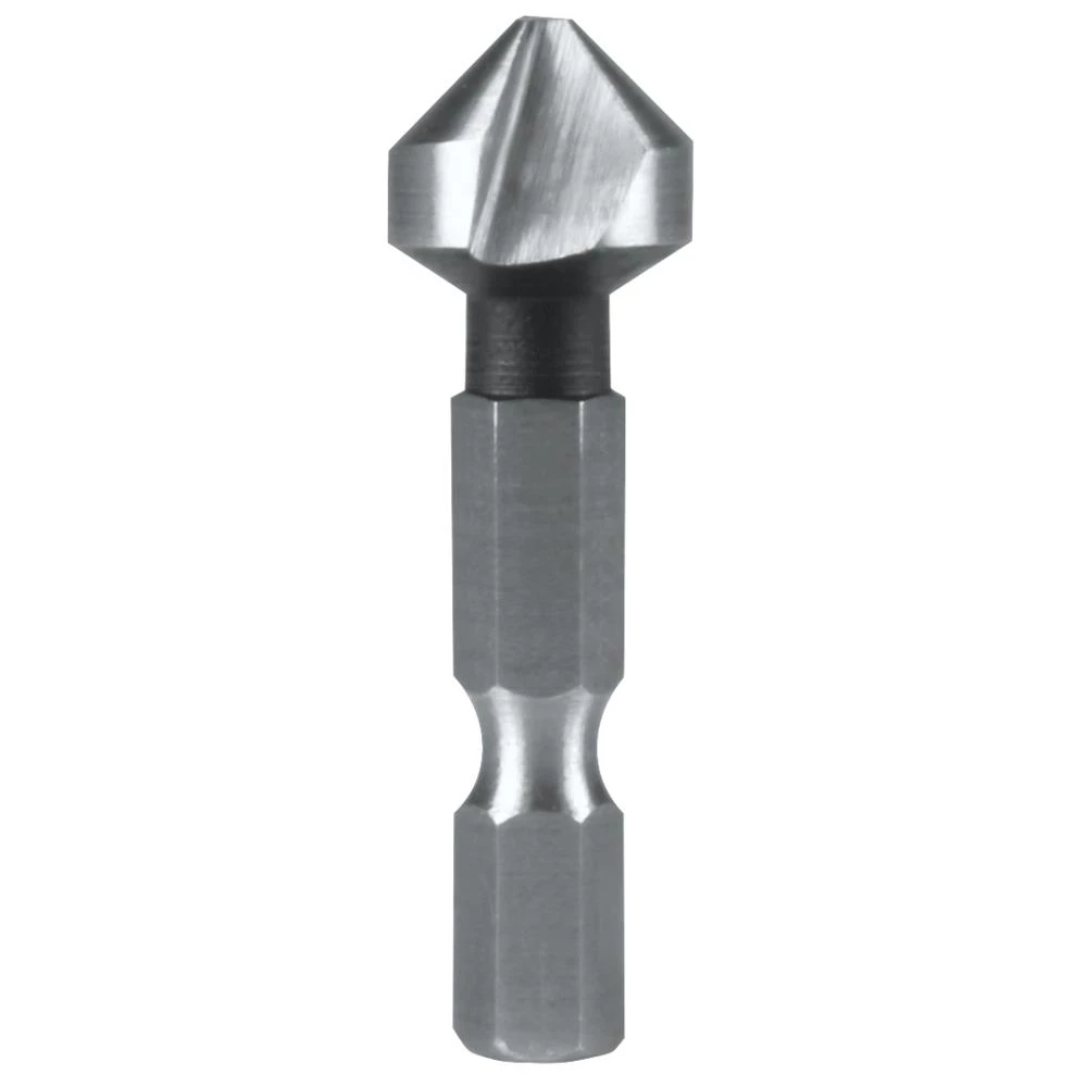 Spidsforsænker 90° HSS med 1/4″ bit-skaft. Anvendes til grat- og ruflefri forsænkning. Velegnet til stål, støbejern, ikke jernholdige metaller og letmetal. Bedste resultat opnås ved lav skærehastighed. Ved anvendelse af kølemiddel forlænges levetiden på værktøjet betydelig. Fås i størrelserne 6,3-20,5 mm.