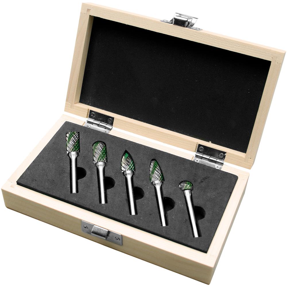 Speedcut fræsestiftsæt i hårdmetal med Speedway kombifortanding: et miks af grov fortanding (grøn) og fin fortanding (blank). Speedway kombifortanding sikrer både hurtig og effektiv fjernelse af materiale samt en glat overflade. Sættet indeholder 5 stk. fræsestifter i form hhv. A – ZYAS – Cylinder med endeskær (også kaldet B), C – WRC – Kuglecylinder, D – KUD – Kugleform, F – RBF – Bue-cylinder, og G – SPG – Spids bue-cylinder. Fås i flere dimensioner.