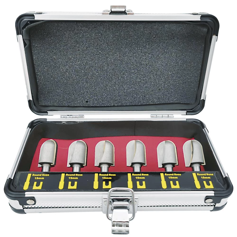 Fræsersæt til gulvvarmeslanger. Sættet indeholder 6 stk. ens hulkehlfræsere i størrelsen 19×25,4 R9,5 K8. Fås i hhv. 16 mm og 20 mm.