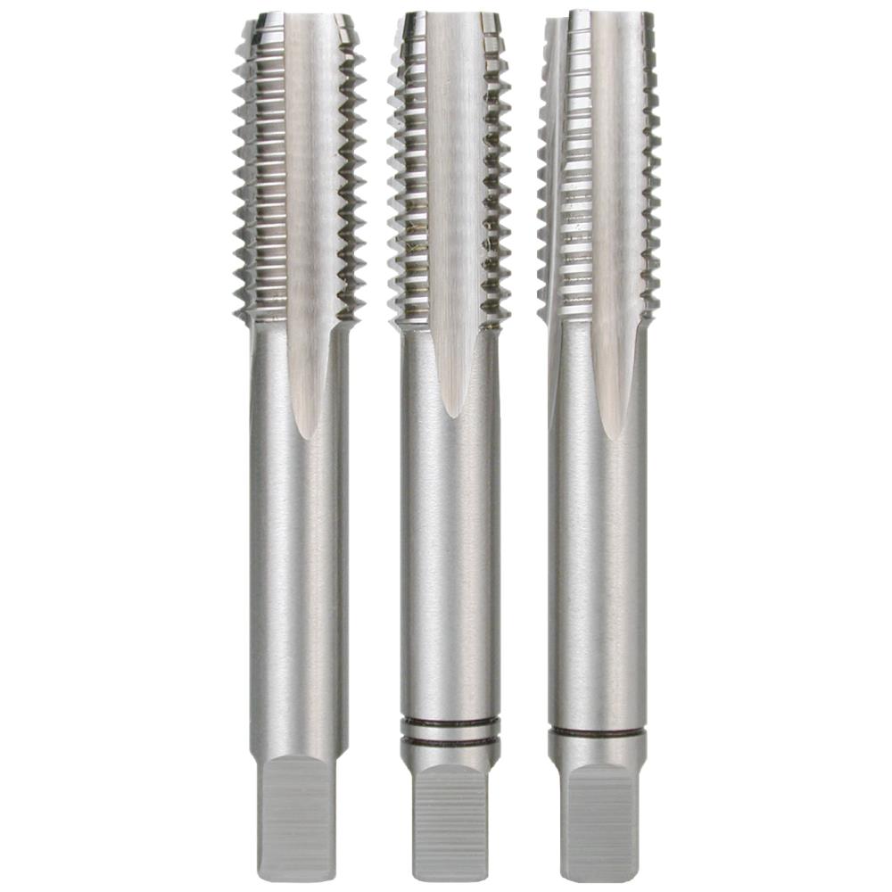 Håndtapsæt 3 stk spids, mellem og bundtap HSS DIN352 HSS. Håndtappe af højpræstations-hurtigstål HSS. Til gennemgangsgevind og bundhulsgevind i ulegeret og lavlegeret stål op til 800 N/mm² styrke. Tempergods og ikke jernholdige metaller. Gevindet skæres af 3 arbejdsgange.