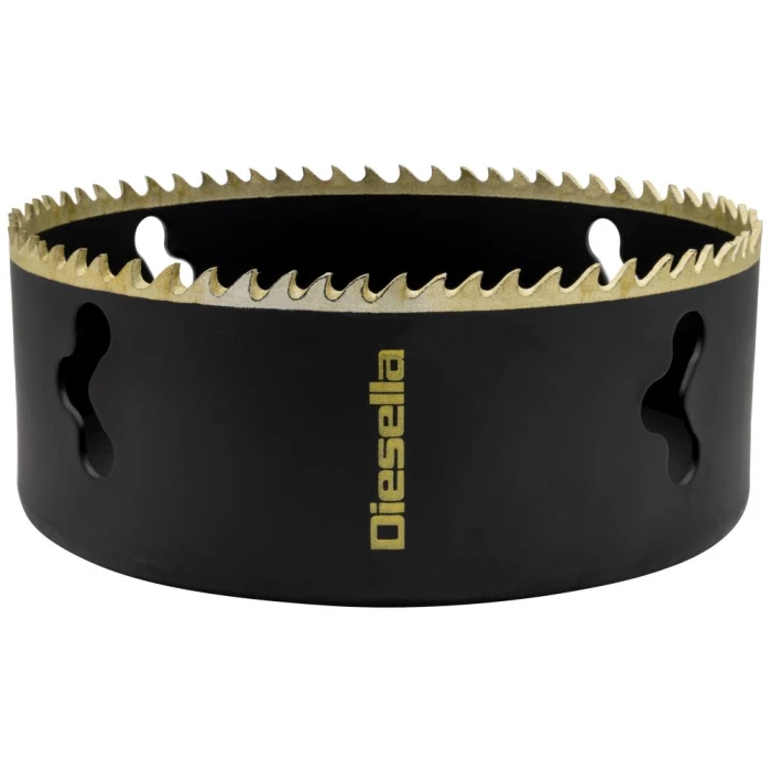 Robust bimetal hulsav, der giver en hurtig og glat skæring på en bred vifte af materialer. Ideel til at skæring i rustfrit stål, stålplader, støbejern, aluminium, træ og plastik samt metalrør med en vægtykkelse op til 3 mm. Den maksimale skæredybde er 41 mm. Udført i HSS M42 stål og med en robust legeringskrop og hætte. Matsort med guldfarvede tænder. Brug af smøremiddel forlænger værktøjets levetid, især når det bruges til metalapplikationer. Fås i dimensioner fra 14 til 210 mm.