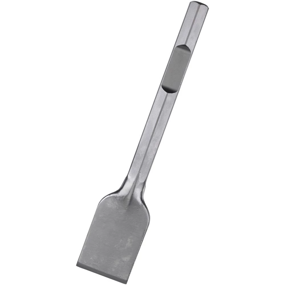 28 mm hex × 80 mm flad bredmejsel velegnet til at skrape og fjerne beton eller mørtel.