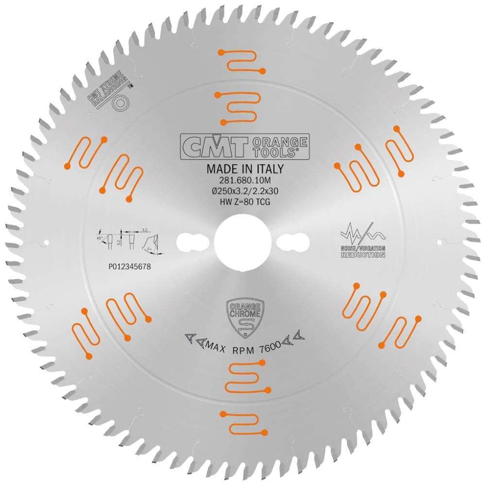Krombelagt rundsavklinge 281 til laminatplader og spånplader – til formatsavning. Perfekt finish uden brug af forridserklinger. Designet til professionelle brugere, der benytter deres sav hele dagen, og forventer høj præcision og holdbarhed af deres værktøj. Klingen leverer et særdeles præcist snit og lang levetid til de mest krævende opgaver. Stambladet er produceret af laserskåret præcisionsstål (46-48 HRC) med tænder i krom-micrograin-hårdmetal, en krom-coating der beskytter mod korrosion og rust – samt laserskårne slidser med lyddæmpende materiale. Til anvendelse med bordsave, horisontale og vertikale formatsave. Fås i flere varianter.