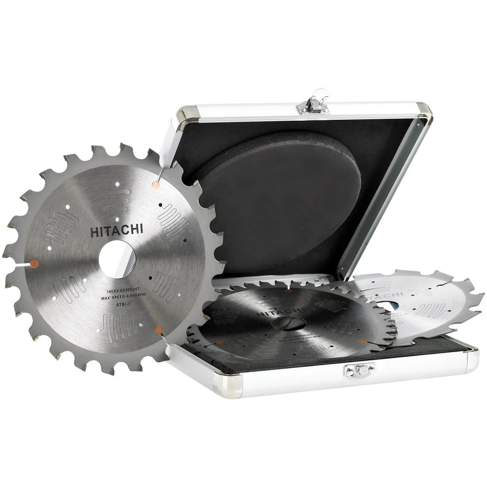Praktisk rundsavklingesæt med tre klinger med ø30 mm hul. Leveres i aluminiumskuffert.