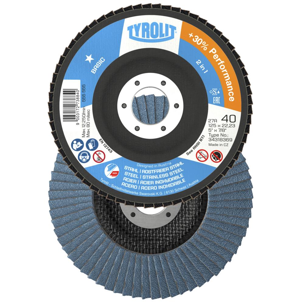 Basic lamelskive 2-i-1 til stål og rustfri stål. Skiven har en glasfiberbærekrop i vinklet udførelse – formen afgør den optimale slibevinkel på 15-20°. Lamelskiven giver en god fleksibel skæreydelse med fornem levetid. Skiven sikrer nem behandling af svejsesømme samt kant- og overfladeslibning. Fås i flere varianter.