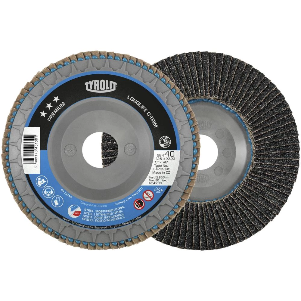 Premium lamelskive Longlife C-Trim til stål og rustfrit stål. Longlife C-Trim skiven har med sin struktur en glimrende slibeydelse, og takket være trimningen kan 100 % af skiven anvendes, så man derved får mere ud af skiven. Lamelskiven kan anvendes på højtlegerede stålkvaliteter og rustfrit stål, men også på ulegerede eller lavtlegerede ståltyper. Bearbejdning af svejsesøm og slibning af kanter og overflader kan ske uden problemer. Det kompakte design garanterer en lang levetid ved slibning af skarpe kanter på tynde plader. Fås i flere varianter.