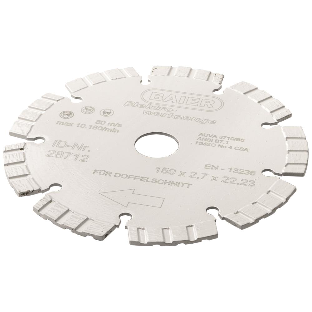 Hvid, sintret diamantskive til tør-vådskæring i hårde materialer som kalksten, poroton, gasbeton og mursten. 10 mm segment og 22,2 mm centerhul. Fås i hhv. ø150 mm og ø185 mm.